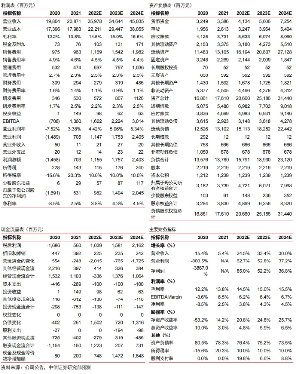 ▍线缆业务稳定增长,盈利能力提升。公司智能缆网业务2021年收入181亿元,同比+5.24%,净利率3.68%,净利率同比增加1.35个百分点,我们认为主要原因包括:1)顺利进行原材料价格联动,成本转移;2)重点开拓各细分领域龙头客户,而龙头客户更注重产品质量,可获得更好的盈利能力。公司注重研发和技术引领,在智能电网、清洁能源、智慧交通和智能制造等领域均有技术突破。在海缆领域,公司在35kV/66kV光电复合海缆及软接头等多项海缆技术的基础上,推动南通如东高端海工海缆装备产业基地建设,我们预计2024年将投产。