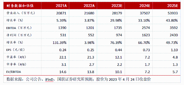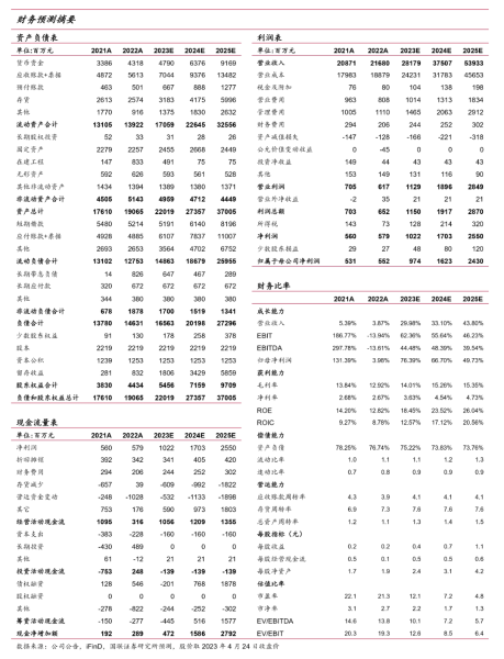 2023Q1公司销售/管理/财务费用率分别为3.17%/2.77%/1.40%,分别同比-0.85/+0.31/+0.58pct,销售费用率管控良好;资产负债率为77.07%,同比降低1.07pct;公司加大研发投入,研发费用为1.35亿元,同比增长19.78%;受益产品毛利提升,资金占用费减少,公司利润高增。