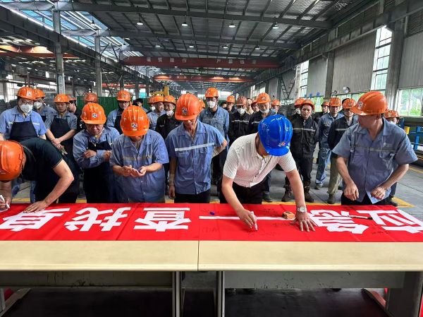活动伊始,各厂区即悬挂主题横幅,员工积极响应签名倡议,营造出全员参与的安全氛围。车间电子屏滚动播放安全宣传视频,以直观画面强化风险认知,让安全理念融入日常。生产厂长率先垂范,牵头开展岗位风险识别、操作规范及应急流程培训,切实提升员工安全技能,夯实管理根基。